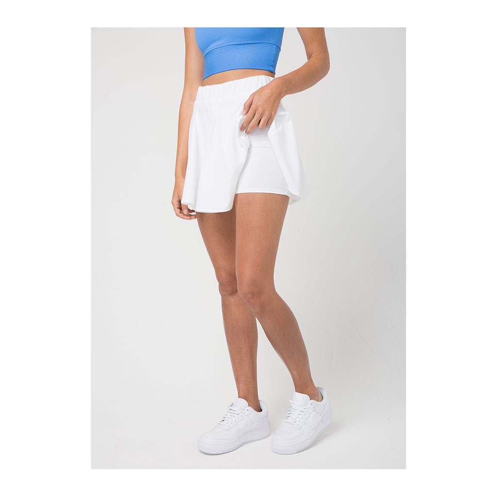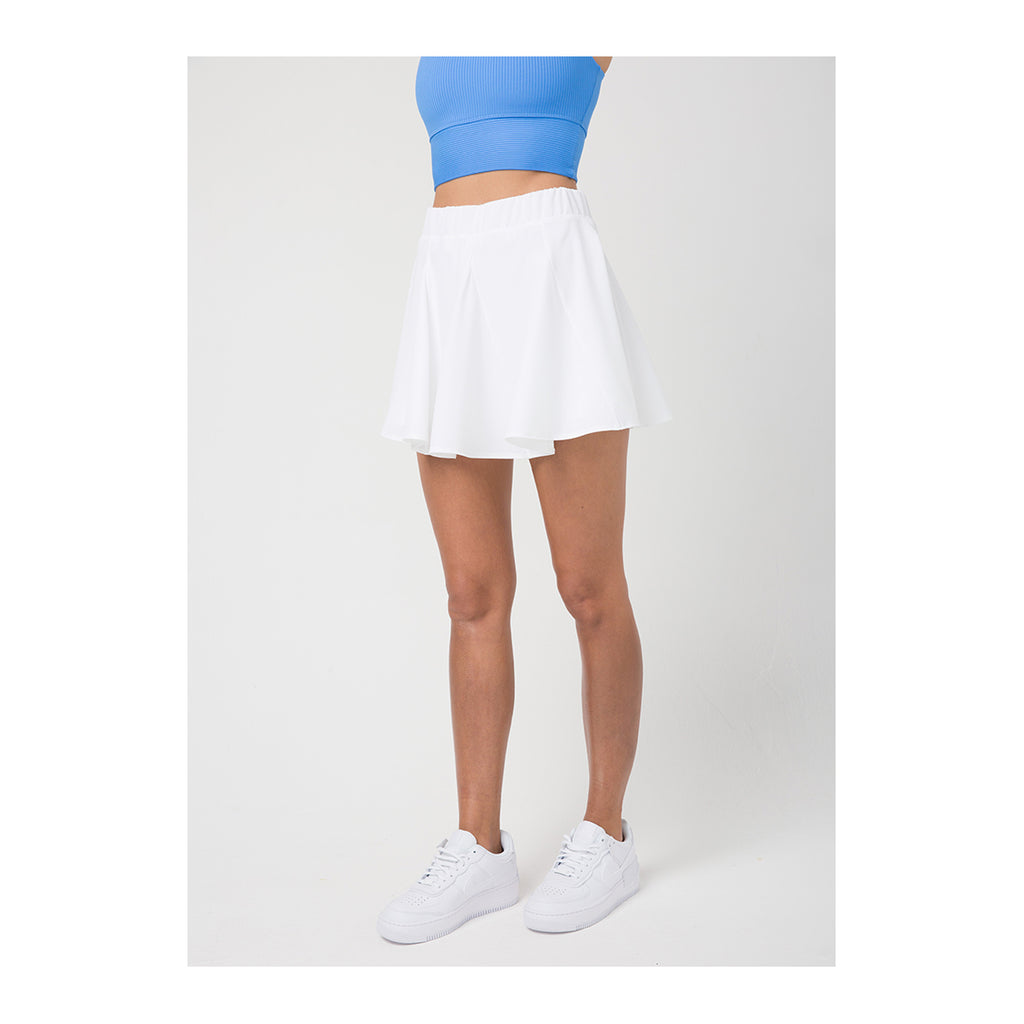 Must-have high waisted mini skort with built in shorts and pleated detailing throughout.