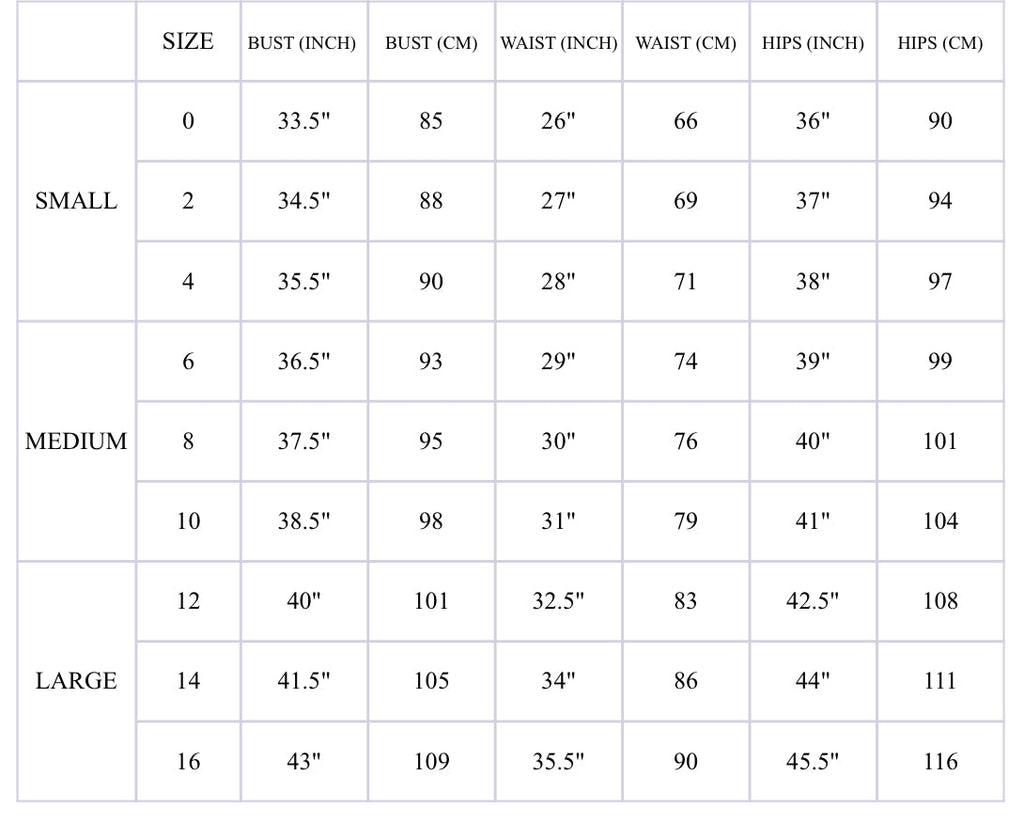 Model Measurements : HEIGHT:5'5" (165CM), BUST:35"(89CM), WAIST:26"(66CM), HIPS:36.5" (93CM)